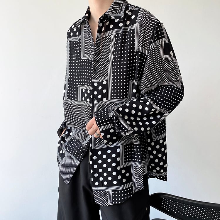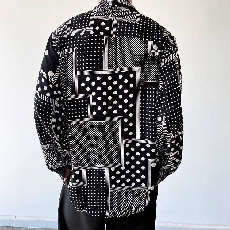 【ZHUIYIシリーズ】★シャツ★ トップス 長袖シャツ チェック柄 ドット柄 男女兼用 メンズ 薄い 涼しい ブラック 黒い