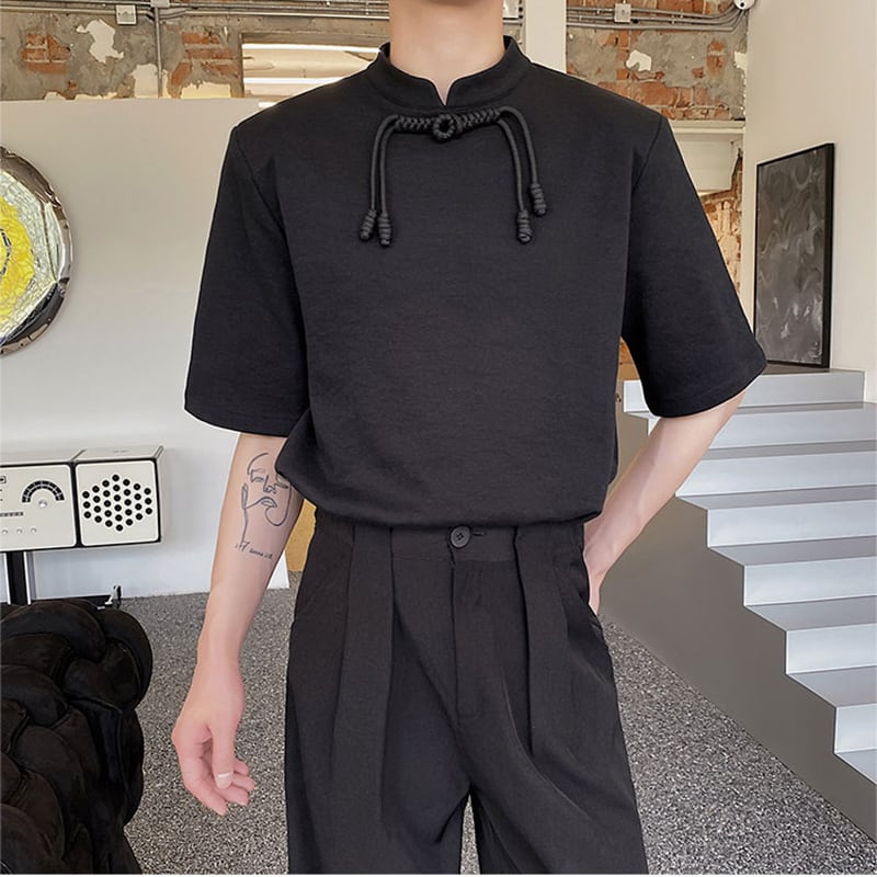 【ZHUIYIシリーズ】★チャイナ風Tシャツ★ 2color トップス チャイナボタン 男女兼用 メンズ シンプル 黒 白