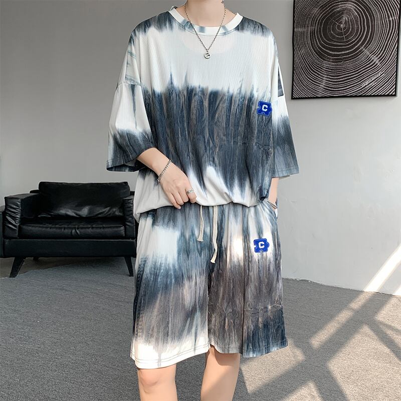 【ZHUIYIシリーズ】★セットアップ★ Tシャツ+短パン 2color 男女兼用 メンズ 大きいサイズ 絞り染め