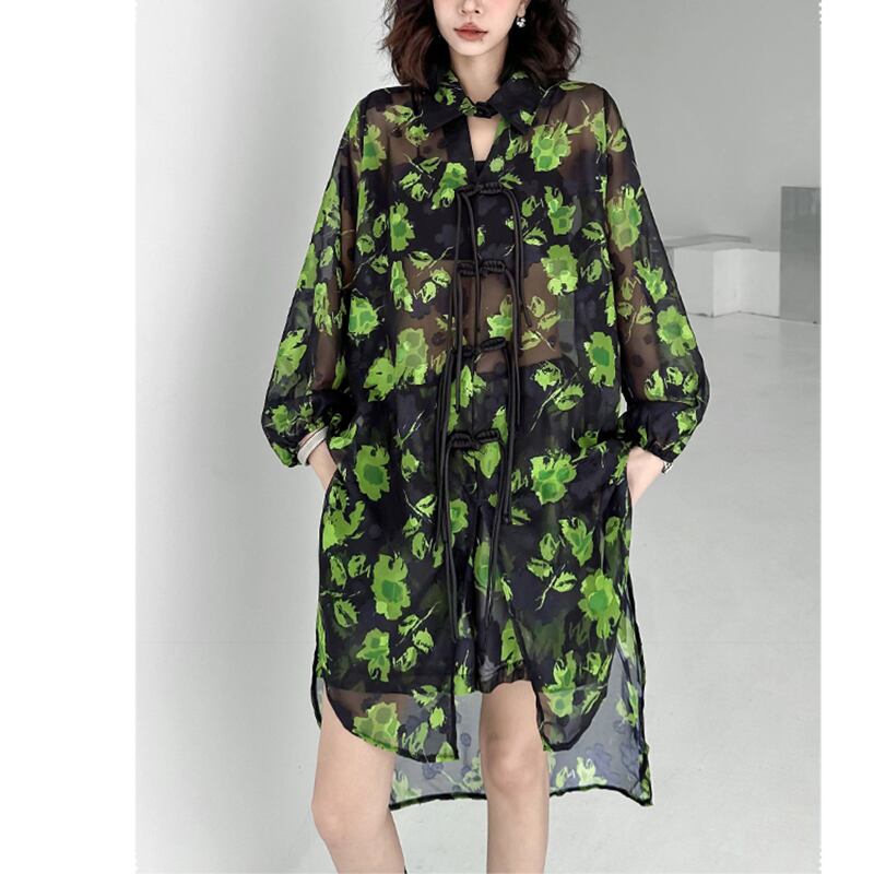【YIDAOシリーズ】★セットアップ★ 2点セット 上下セット シャツ+短パン 着痩せ 涼しい グリーン 緑