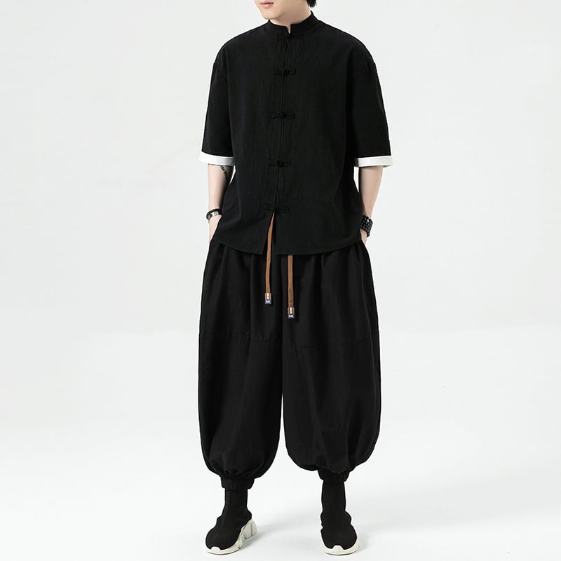 【JUNYIシリーズ】★チャイナ風ズボン★ ボトムス カジュアルパンツ メンズ 大きいサイズ 無地 レトロ ブラック 黒い