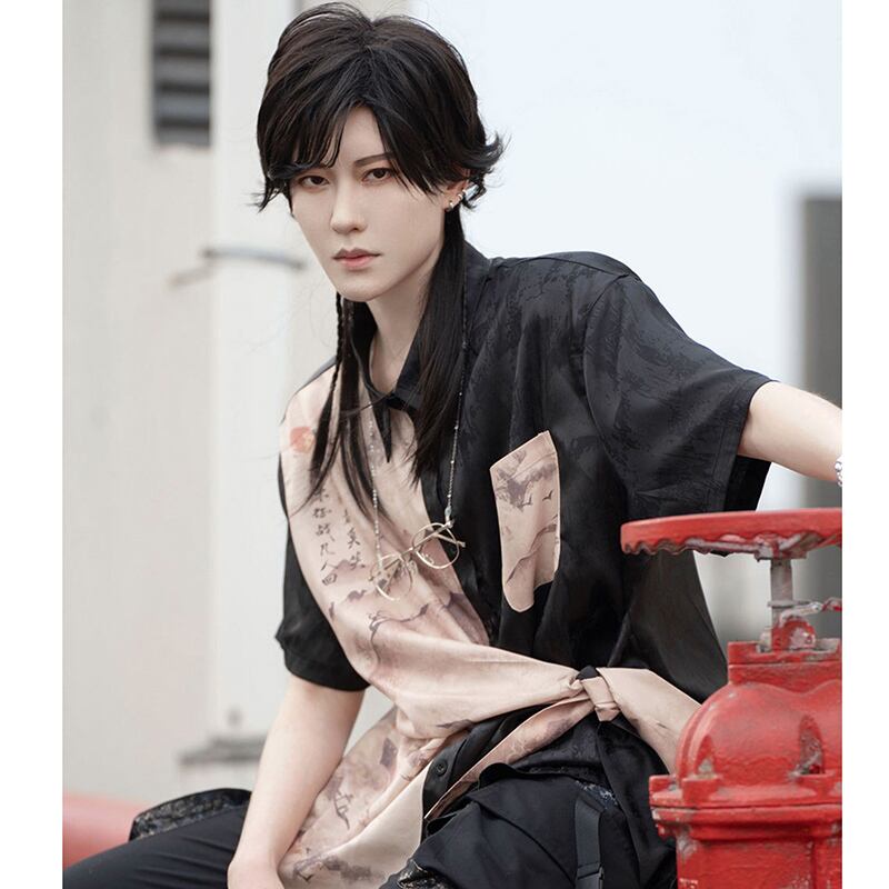 【卿棠シリーズ】★チャイナ風シャツ★ トップス 文字柄 男女兼用 メンズ 半袖シャツ 涼しい 個性的 オリジナル