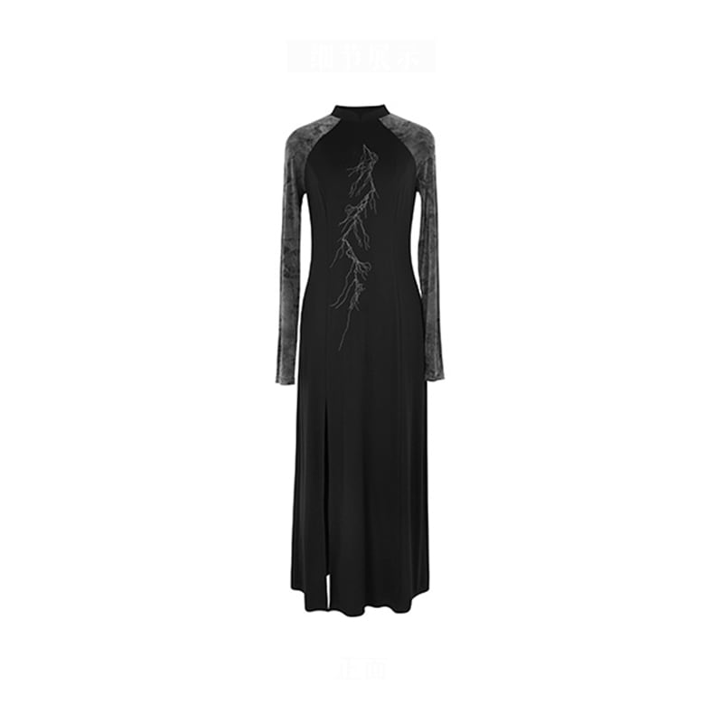 【大青龍肆シリーズ】★チャイナ風ワンピース★ 改良型チャイナドレス 長袖 レトロ ロング丈 オリジナル 着痩せ