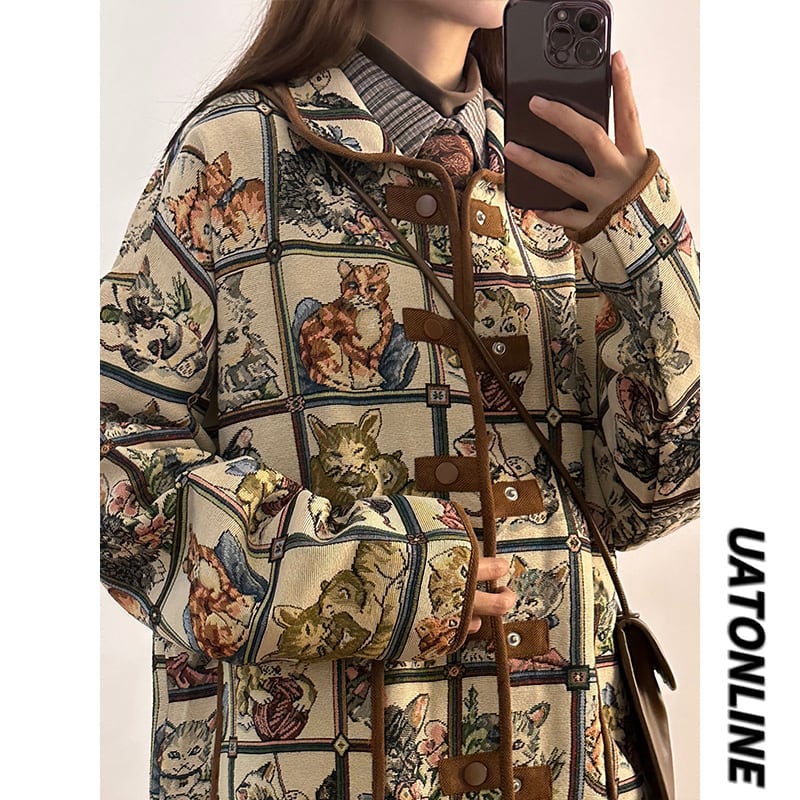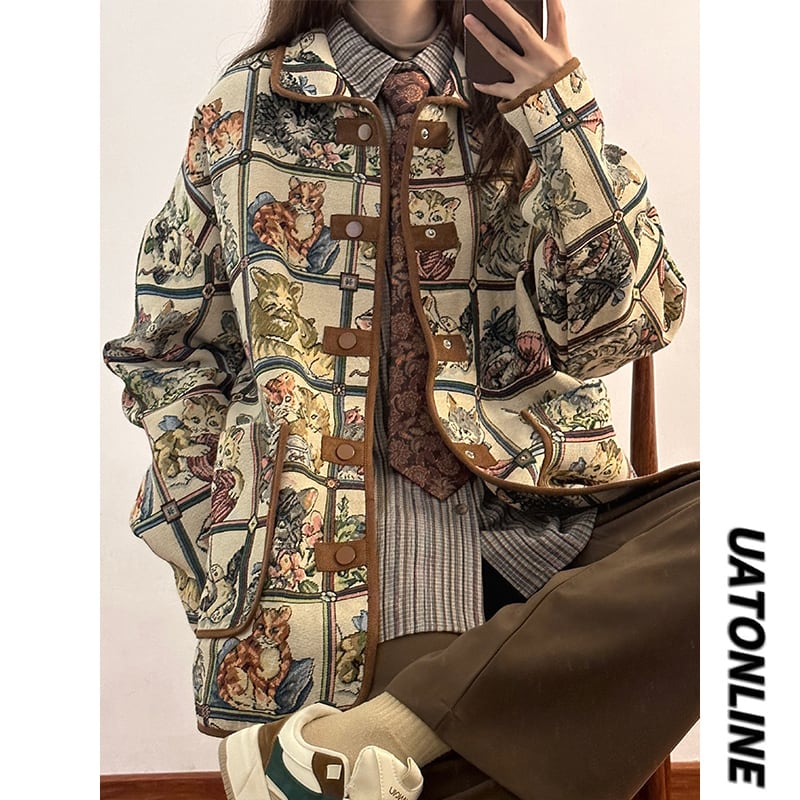 ✿!【UATONLINEシリーズ】★ジャケット★ ユニセックス アウター ネコ ねこ 猫 男女兼用 メンズ チェック柄 可愛い ゆったり