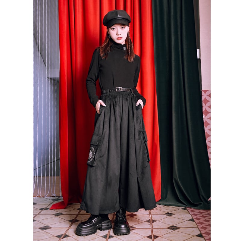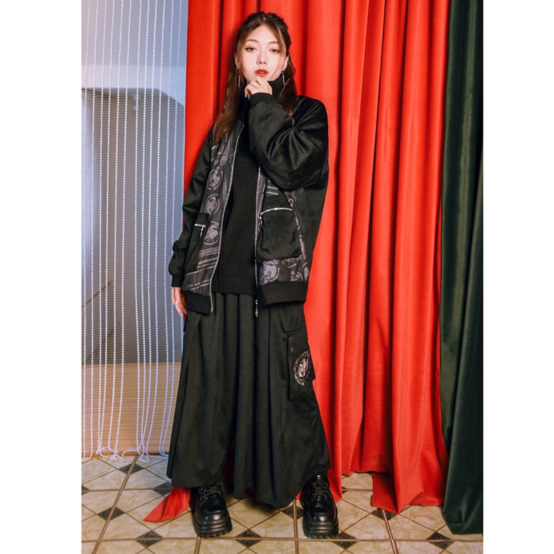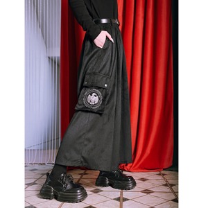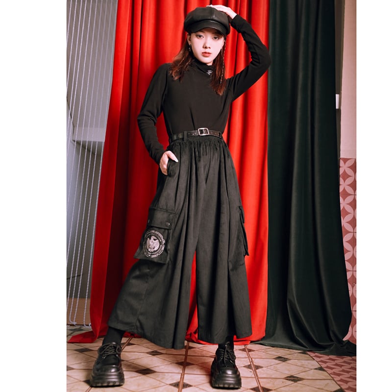 【古怪舍---金乌シリーズ】★チャイナ風ズボン★ ボトムス ガウチョパンツ 九分丈 コーデュロイ 黒 厚て 暖か