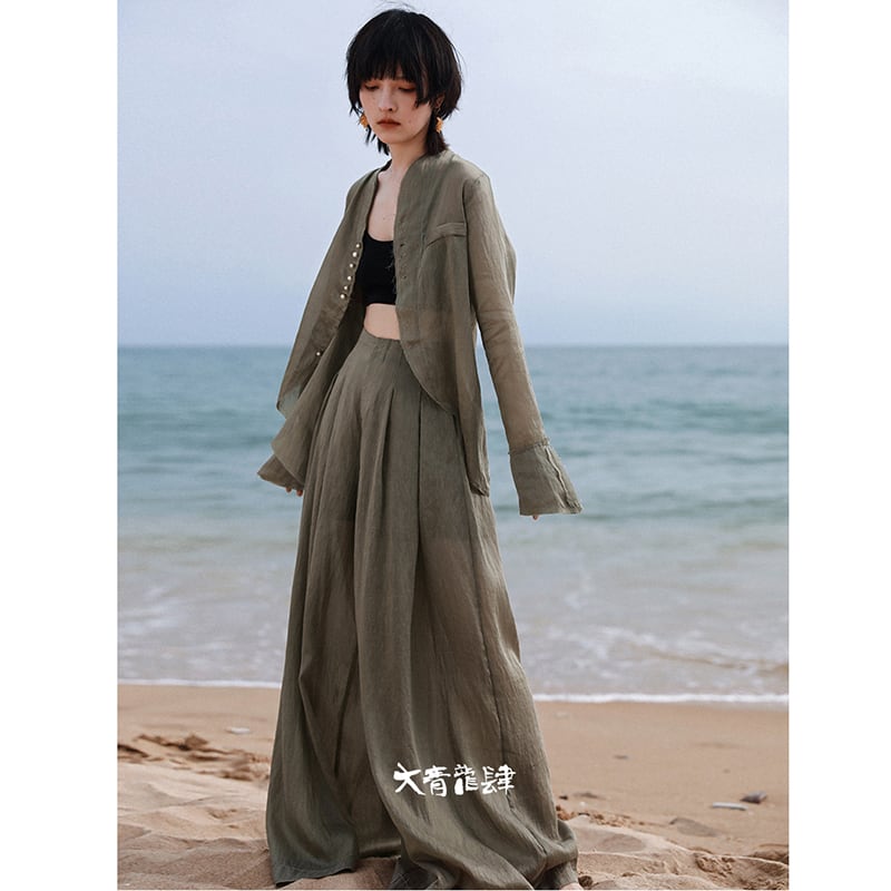 【大青龍肆シリーズ】★チャイナ風ズボン★ 3color ガウチョパンツ ボトムス ワイドパンツ 気質アップ シンプル 薄い