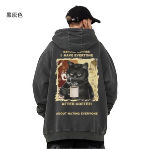 【MOYANシリーズ】★パーカー★ 5color トップス ネコ ねこ 猫 男女兼用 メンズ 大きいサイズ 黒 灰 白 赤