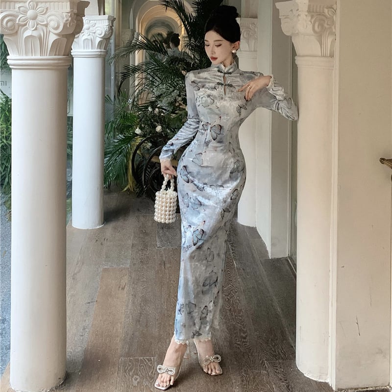 【NANAシリーズ】★チャイナドレス★ ワンピース ベルベット ロング丈 着痩せ 気質アップ セクシー