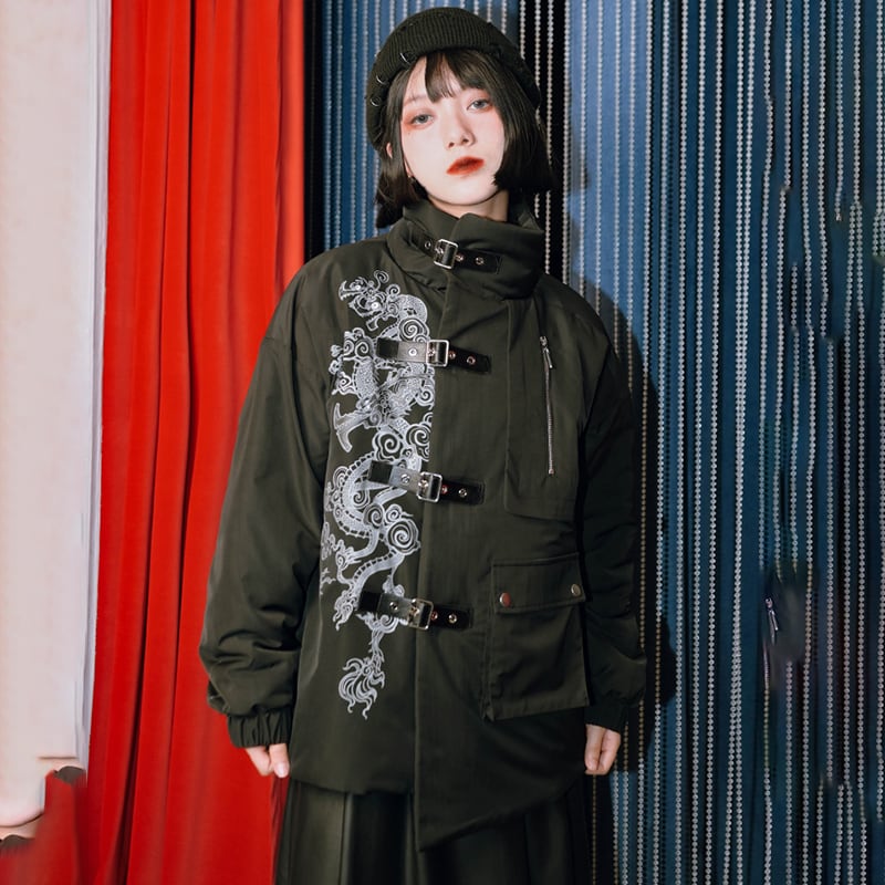 【古怪舍---山海經·應龍シリーズ】★チャイナ風コート★ 綿入れコート 龍 龍紋 冬用コート ブラック 黒い