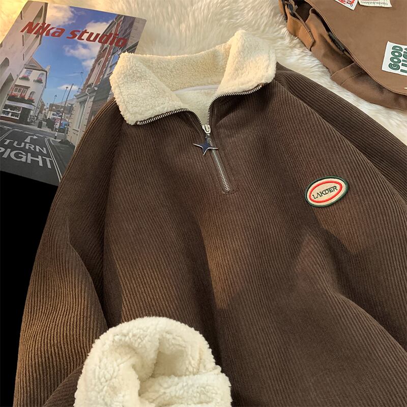 【SENSUシリーズ】★POLOシャツ★ 3color 裏起毛 トップス 男女兼用 メンズ コーデュロイ ブラック コーヒー色 ベージュ