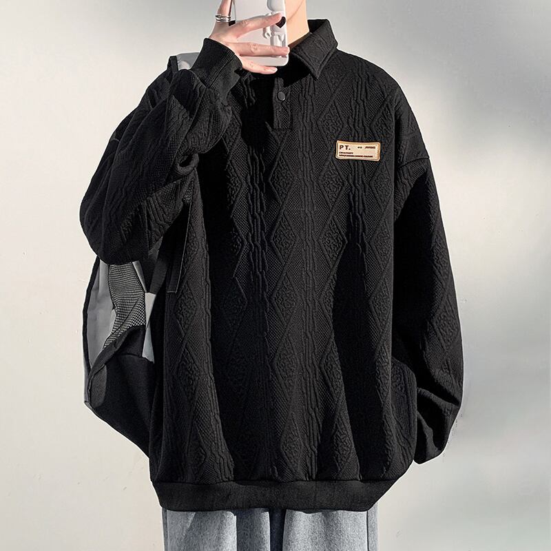 【DUFENGシリーズ】★POLOシャツ★ 2color トップス 長袖 男女兼用 メンズ 大きいサイズ ブラック ベージュ