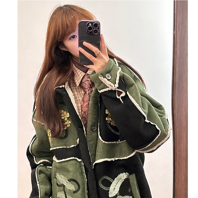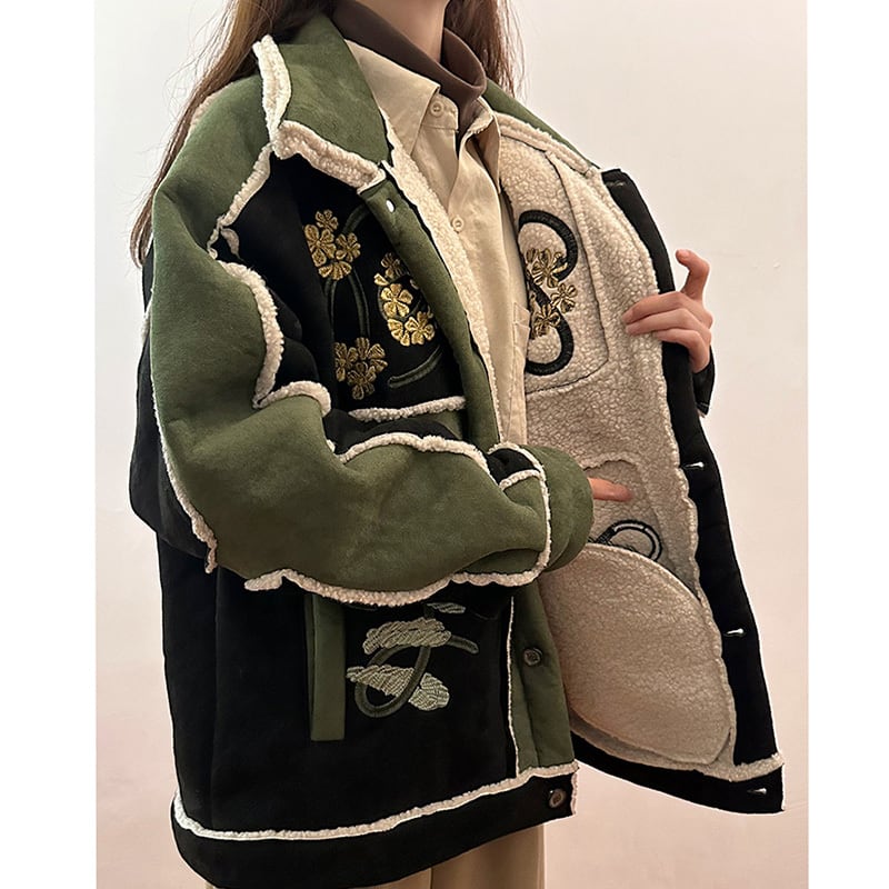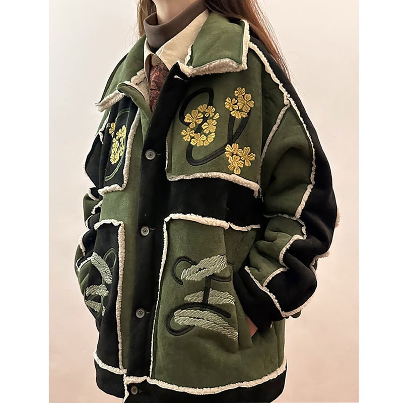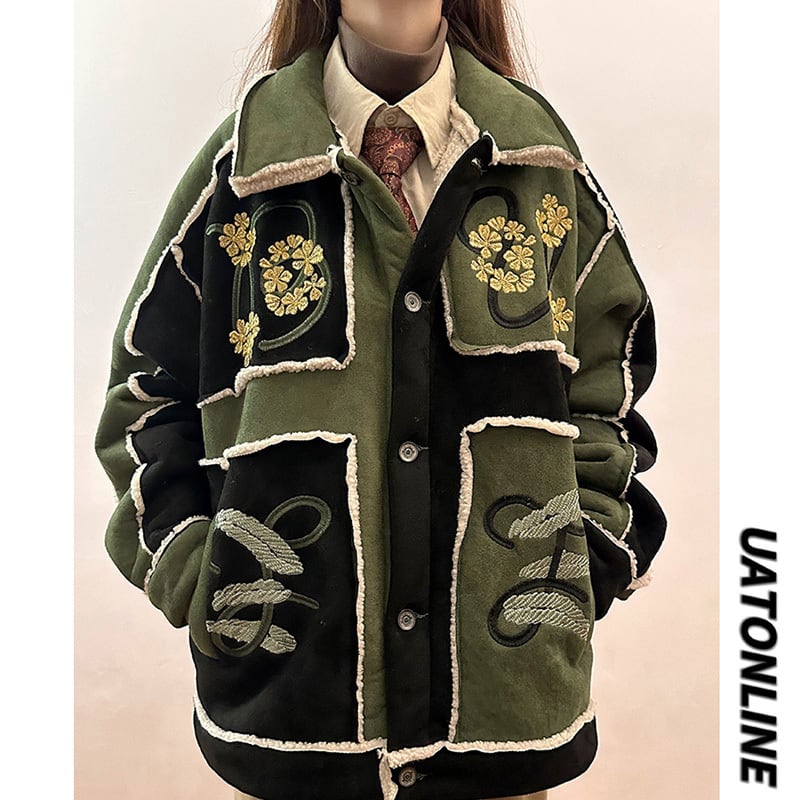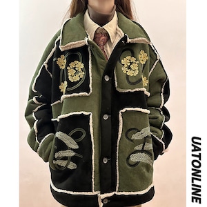 【UATONLINEシリーズ】★コート★ 厚て アウター ジャケット 男女兼用 メンズ グリーン 緑 花柄 スエード