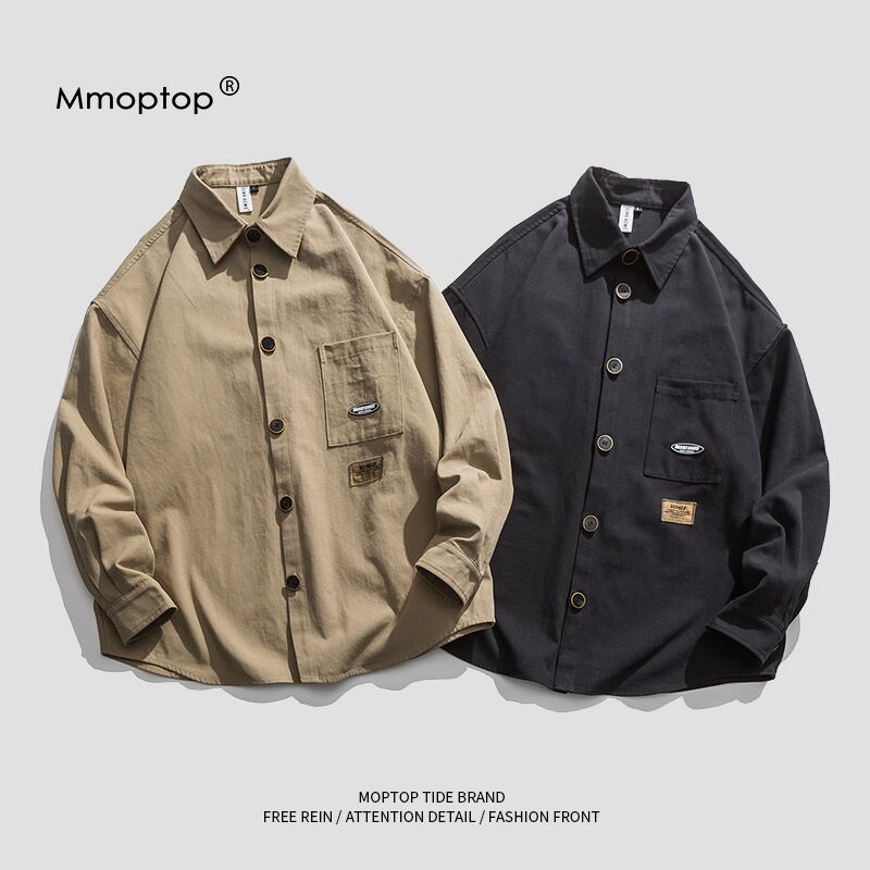 【Mmoptopシリーズ】★シャツ★ 2color トップス 男女兼用 メンズ カジュアル コットン 棉 カジュアル ブラック カーキブラウン