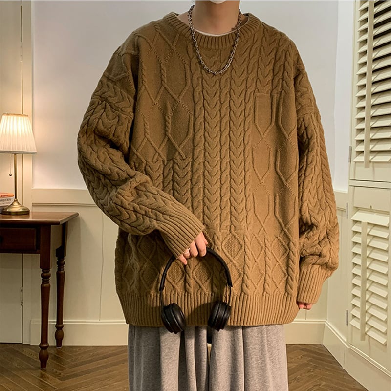 【XGYシリーズ】★セーター★ 3color トップス 男女兼用 メンズ シンプル ラウンドネック ベージュ ブラック ブラウン
