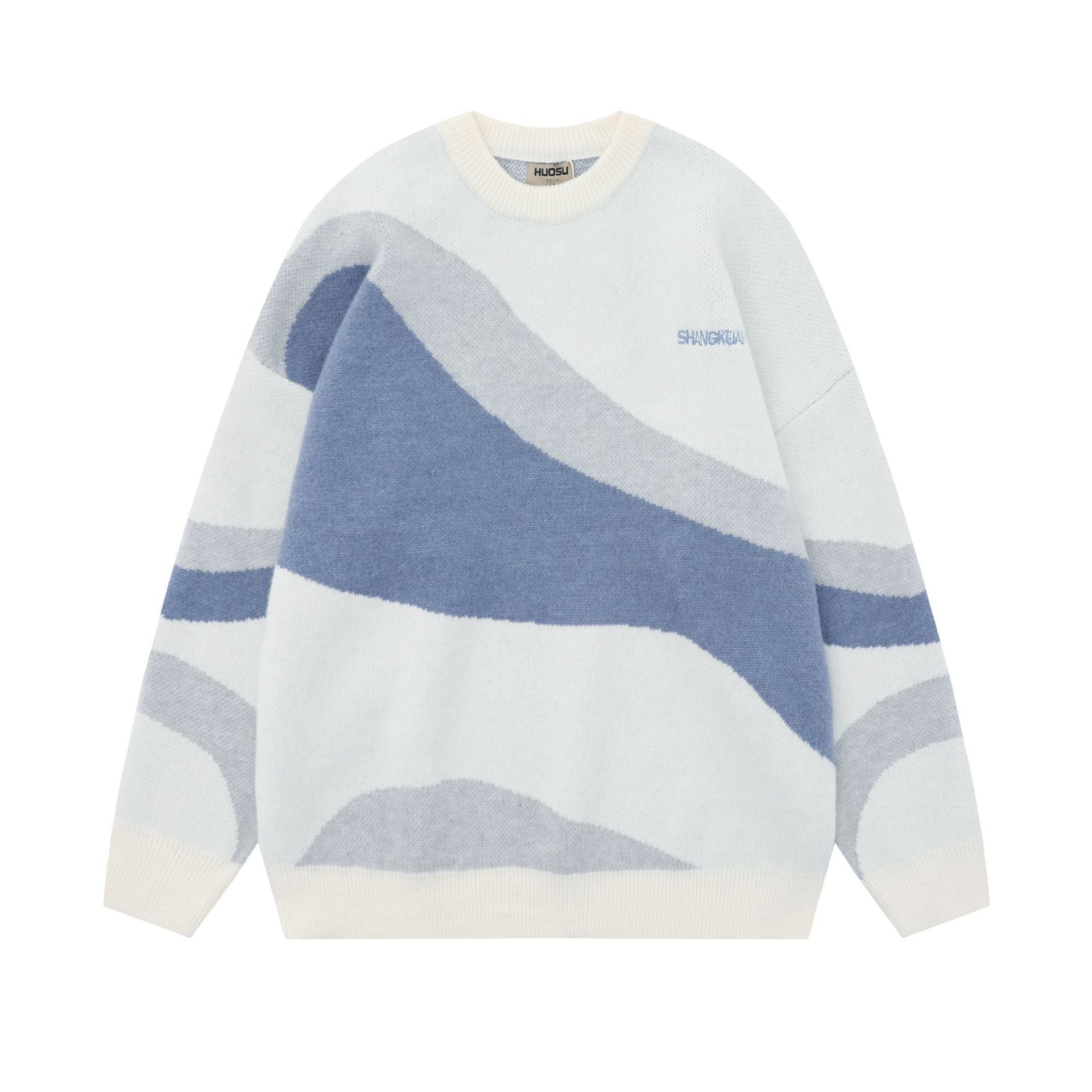 【Mmoptopシリーズ】★セーター★ 2color ニットトップス 男女兼用 メンズ 配色 個性的 ホワイト ブラック