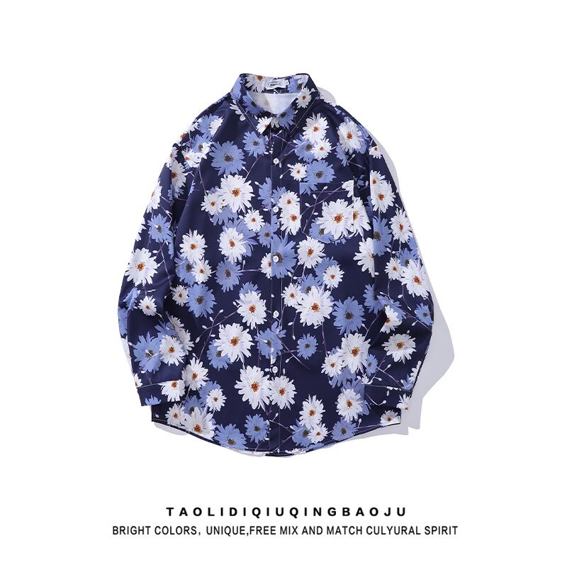 【MOISHE TIDEシリーズ】★シャツ★ トップス 長袖シャツ 男女兼用 メンズ 花柄シャツ 薄い レトロ