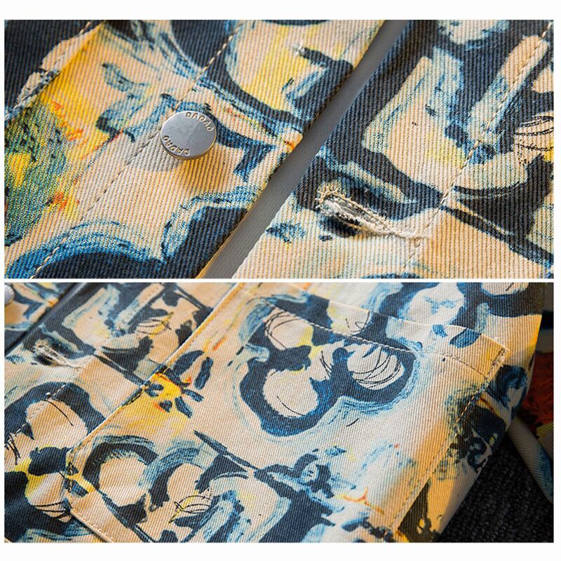 【HPCPシリーズ】★ジャケット★ アウター 男女兼用 メンズ カジュアル 油絵風 プリント レトロ 落書き
