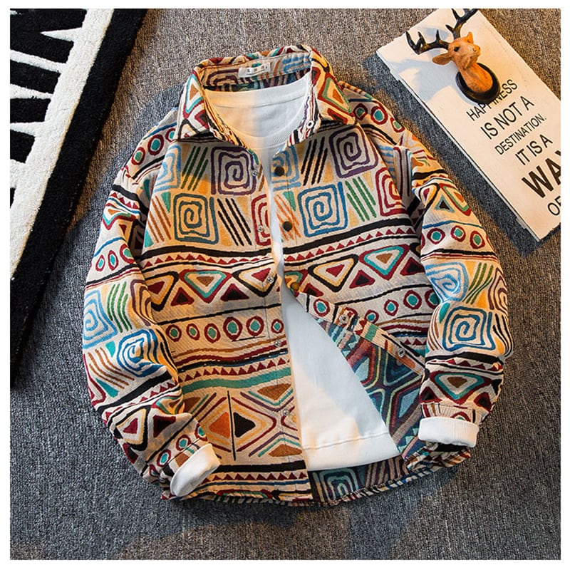 【HPCPシリーズ】★シャツ★ トップス 男女兼用 メンズ カジュアル エスニック風 民族風 シャツアウター