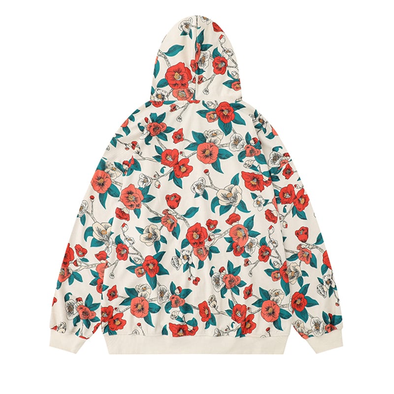 【BEAT BOYシリーズ】★アウター★ パーカー ファスナー付き 男女兼用 メンズ レディース プリント ジャケット フード付き 花柄 赤