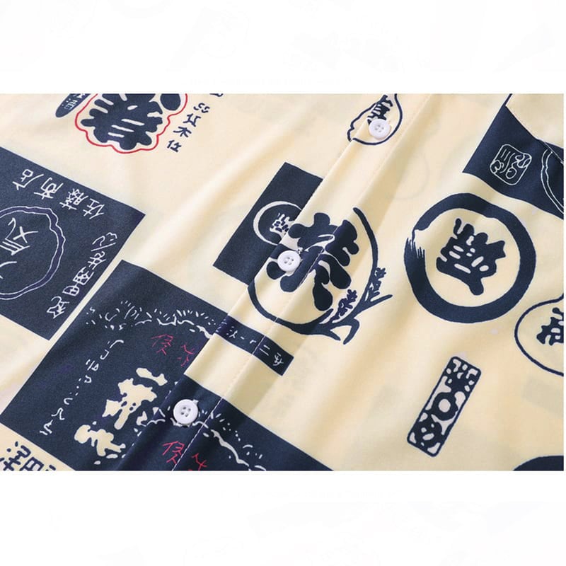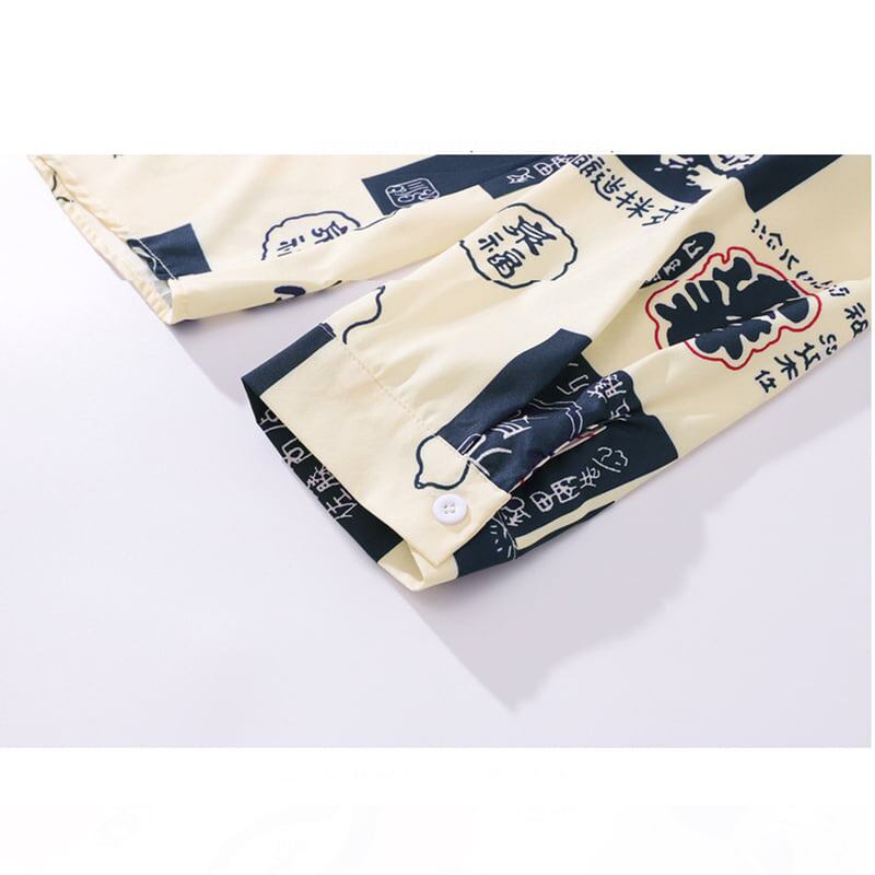 【JINKESENシリーズ】★チャイナ風シャツ★ トップス 長袖シャツ 男女兼用 メンズ プリント 文字柄 水墨柄