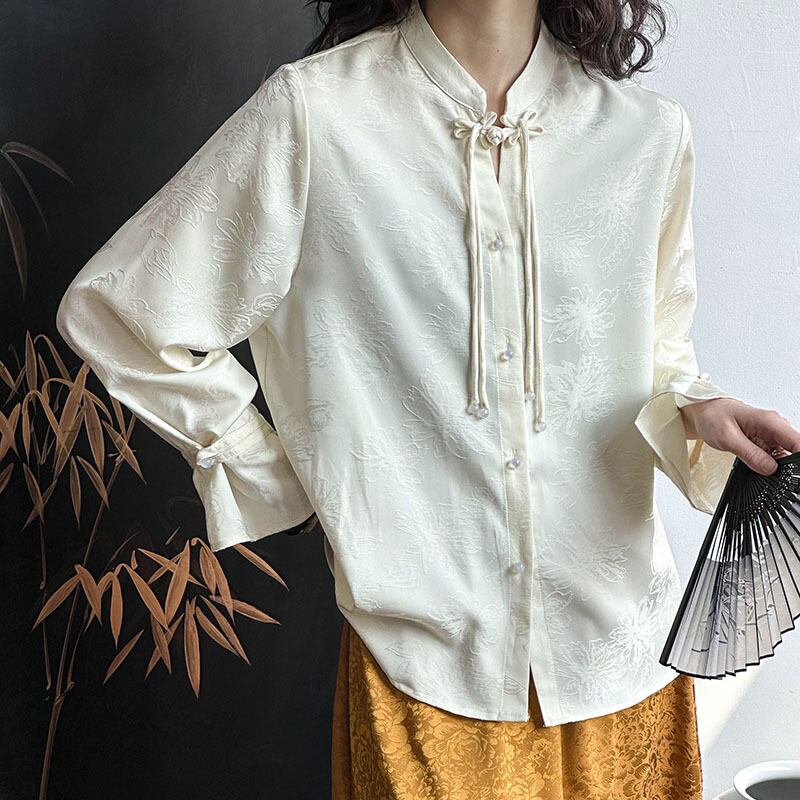 【橘芷シリーズ】★チャイナ風シャツ★ トップス 長袖シャツ レディース 中華服 気質アップ デート 通勤