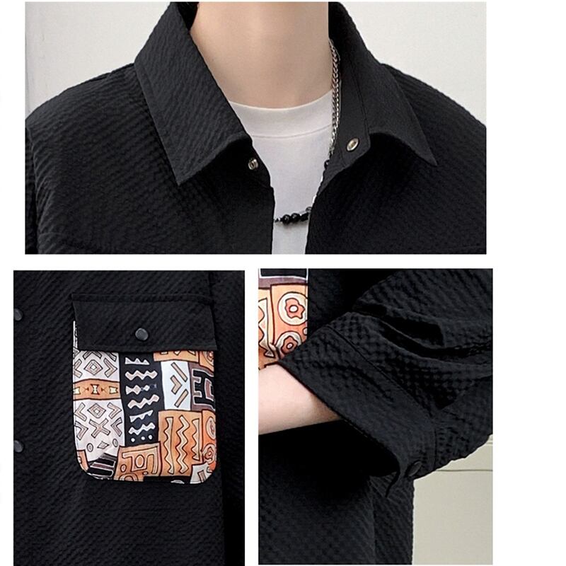 【ZUOFEILIシリーズ】★シャツ★ 3color トップス 七分袖 男女兼用 メンズ 大きいサイズ 切り替え おしゃれ