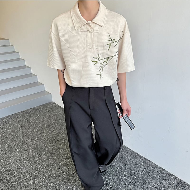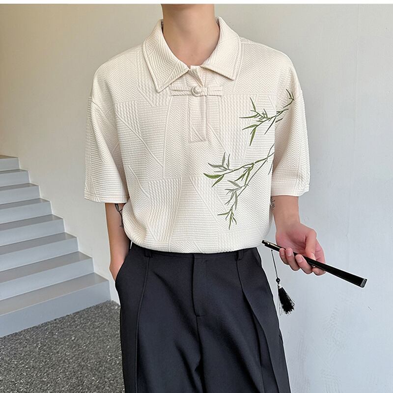 【ZHUIYIシリーズ】★チャイナ風トップス★ 2color Tシャツ 半袖 竹 竹柄 メンズ カジュアル 中華服