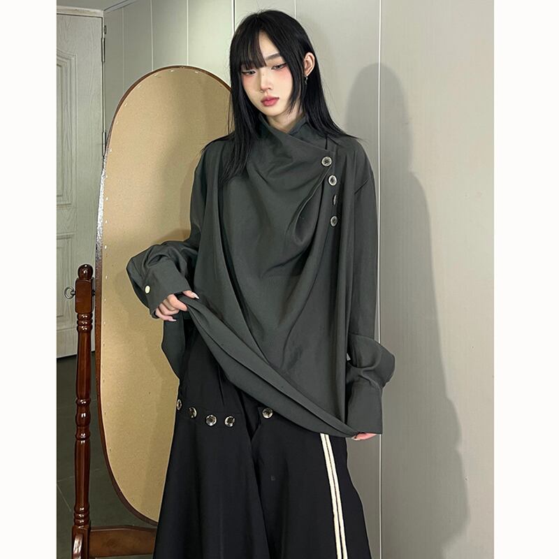 【SHANBENシリーズ】★チャイナ風シャツ★ 2color トップス 長袖シャツ 男女兼用 メンズ デザイン性有り ゆったり