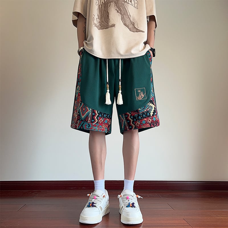 【KADISHOUシリーズ】★チャイナ風ズボン★ 短パン 4color ボトムス ショートパンツ 男女兼用 メンズ カジュアル エスニック風 切り替え 合わせやすい