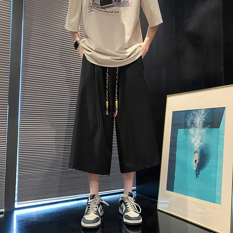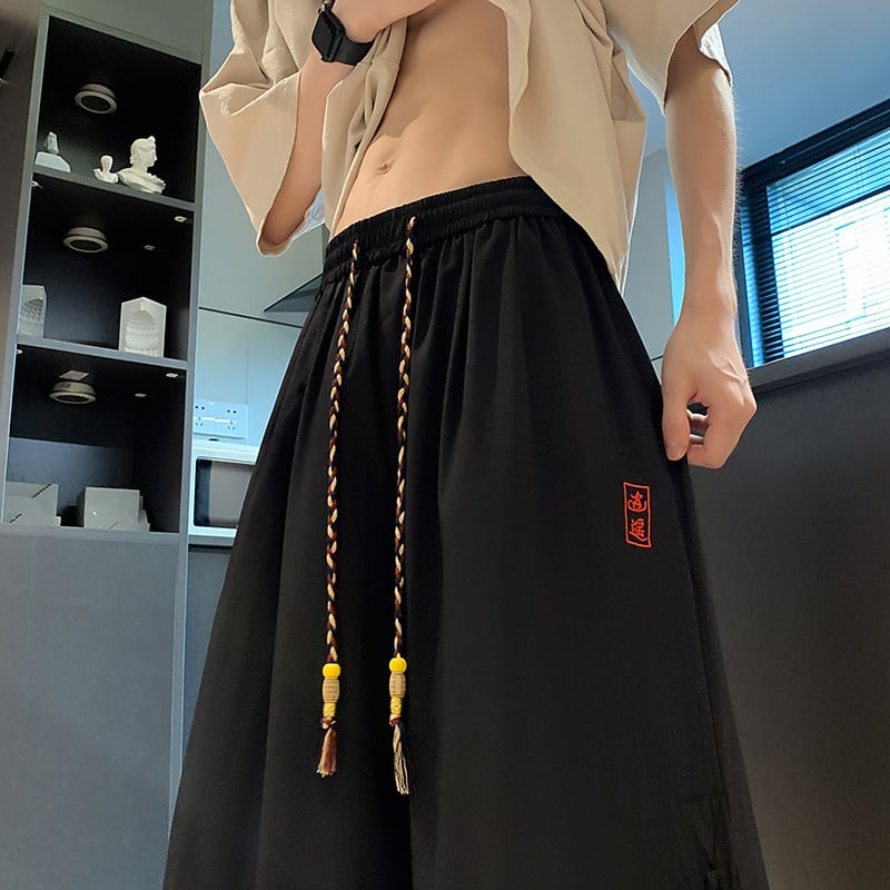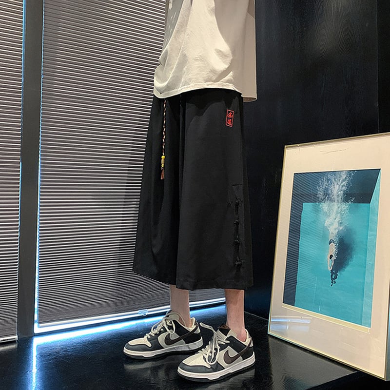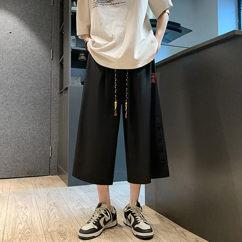 【KADISHOUシリーズ】★チャイナ風ズボン★ ボトムス 男女兼用 メンズ 大きいサイズ 七分丈 ブラック 黒い