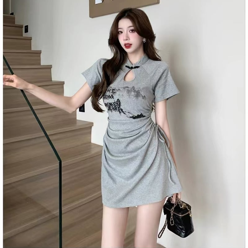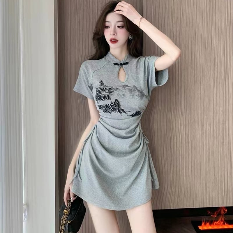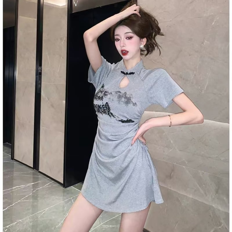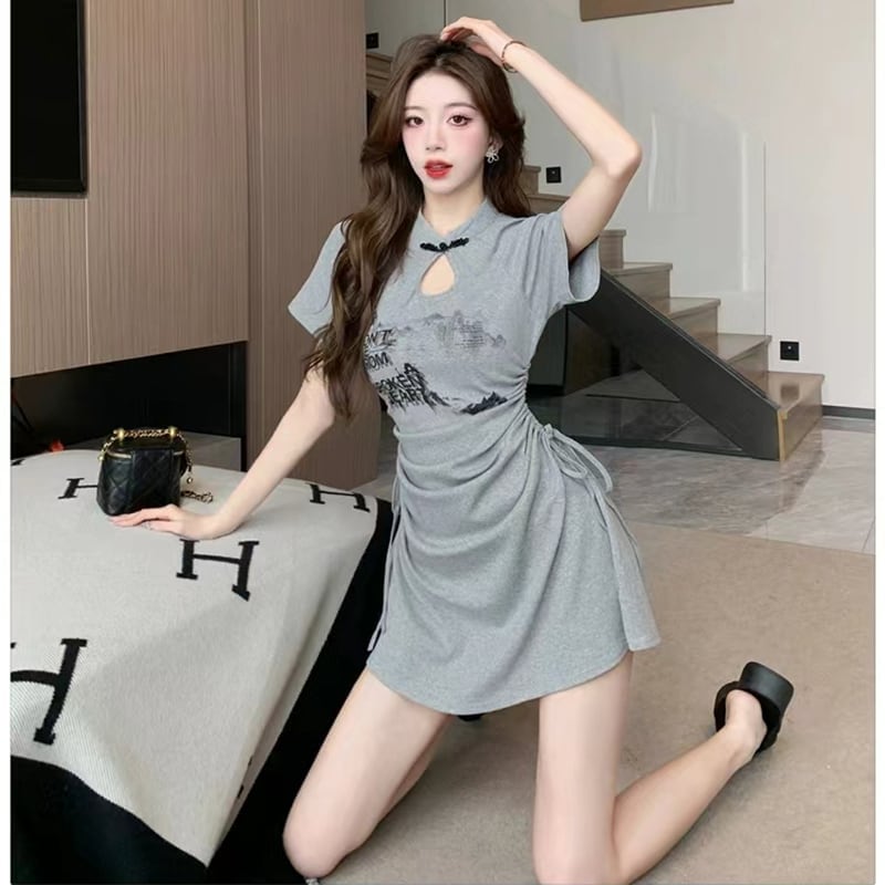 【MEILIFANGシリーズ】★チャイナ風ワンピース★ 2color パンダ ブラック グレー ショート丈 セクシー