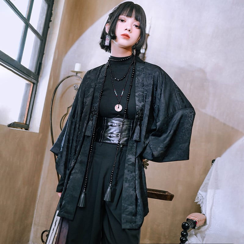 【古怪舍---瓊樓序シリーズ】★チャイナ風トップス★ 法被 アウター 個性的 レトロ 合わせやすい ブラック 黒い