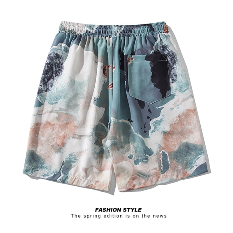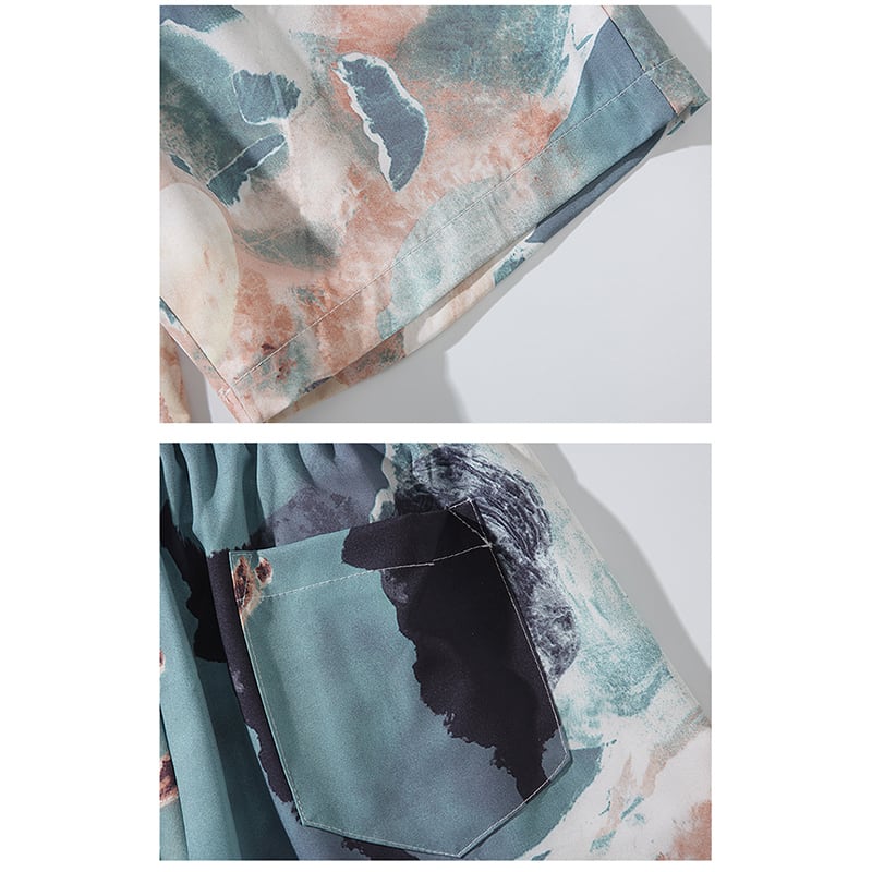 【CHONGXIANGシリーズ】★セットアップ★ シャツ+短パン 油絵風 男女兼用 メンズ 大きいサイズ 水墨柄 落書き