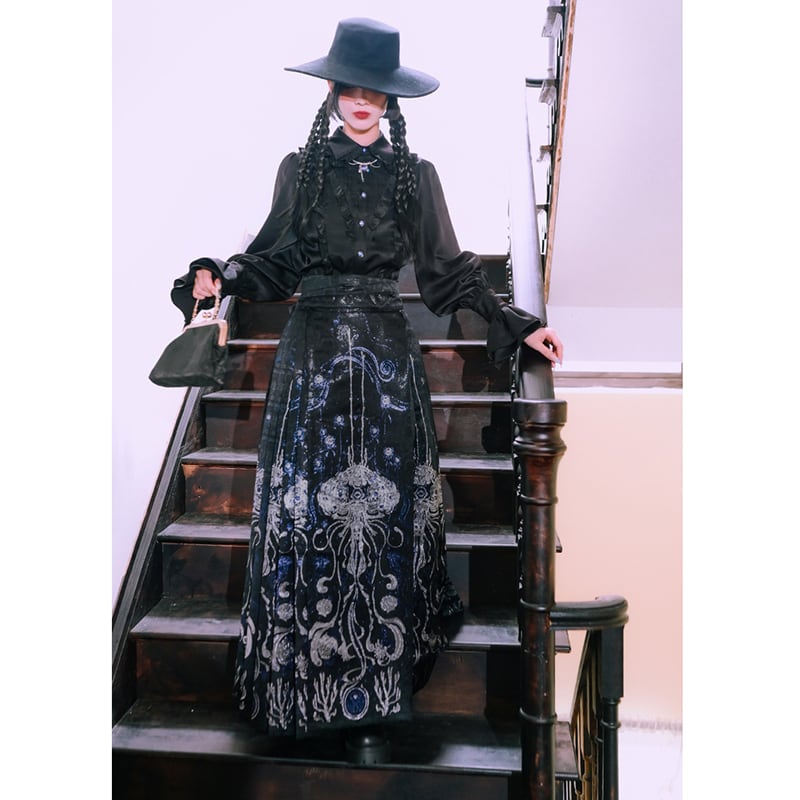 【古怪舍---藍眼淚シリーズ】★チャイナ風スカート★ まきスカート ボトムス オリジナル 漢服スカート