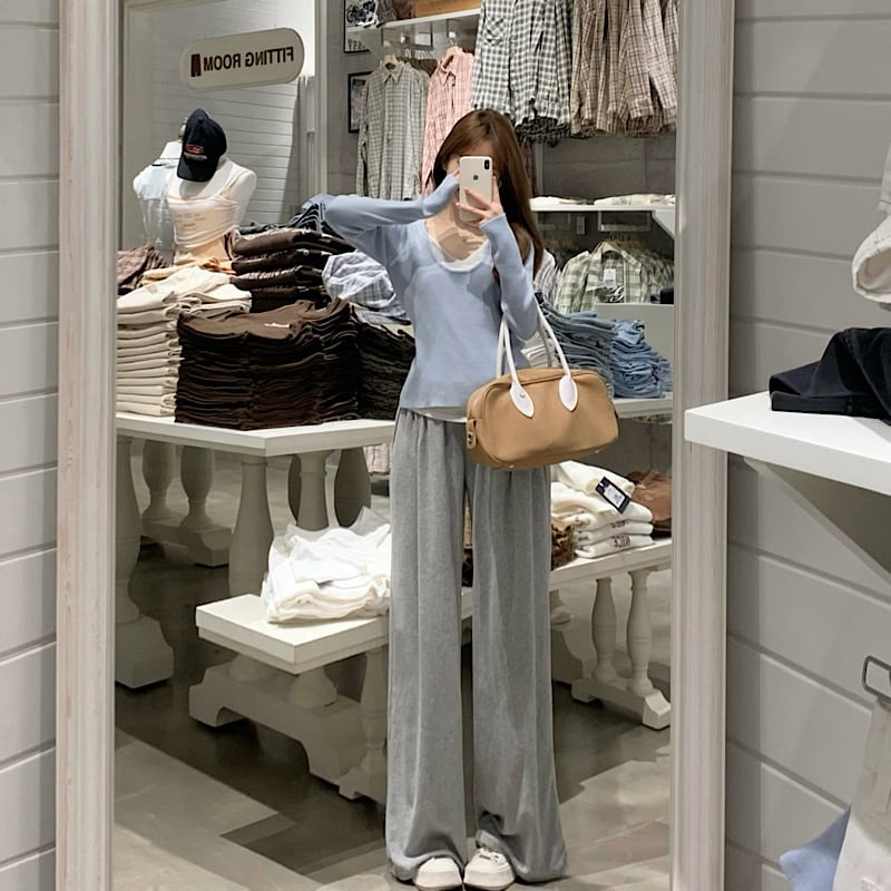 【Kumikumiシリーズ】★ニットトップス★ トップス フェイクレイヤード 長袖 レディース 優しい印象を与える ブルー