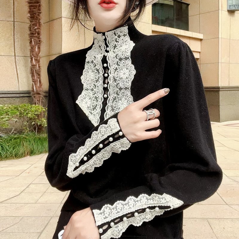 【GUGESHAシリーズ】★ニットトップス★ 3color 切り替え レディース 気質アップ ホワイト ブラック アプリコット