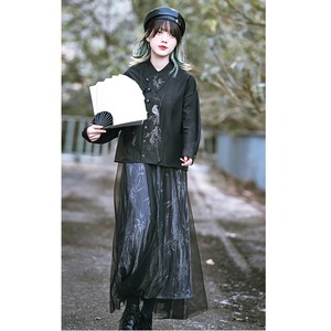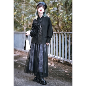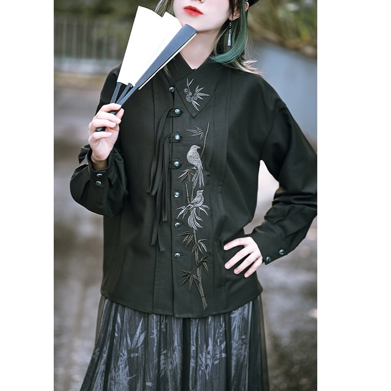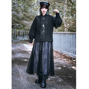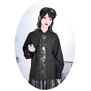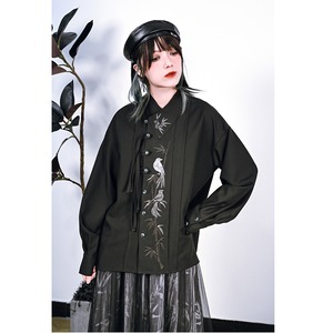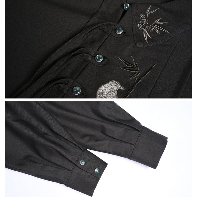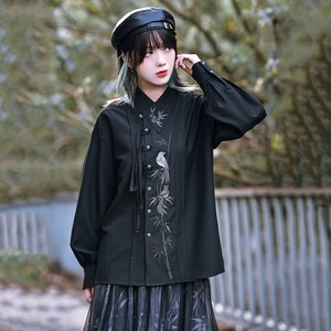 【古怪舍---鸞鳴赴夢シリーズ】★チャイナ風トップス★ シャツ 長袖シャツ オリジナル 刺繍 ブラック 黒い