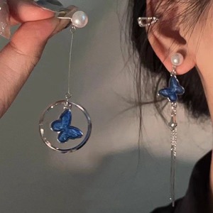 【藍蝶シリーズ】★耳飾り★ ピアス ペア アクセサリー レディース 非対称 可愛い 蝶々 ブルー 青い