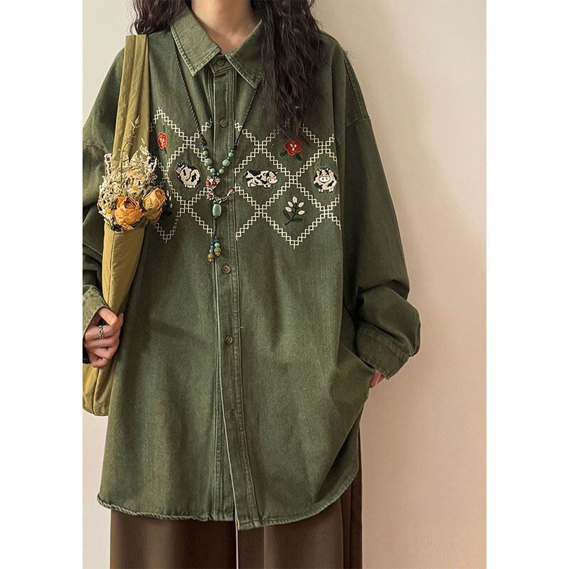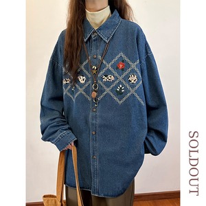 【ECOKシリーズ】★シャツ★ 2color トップス 長袖シャツ 男女兼用 メンズ デニムシャツ 刺繍 カートゥーン