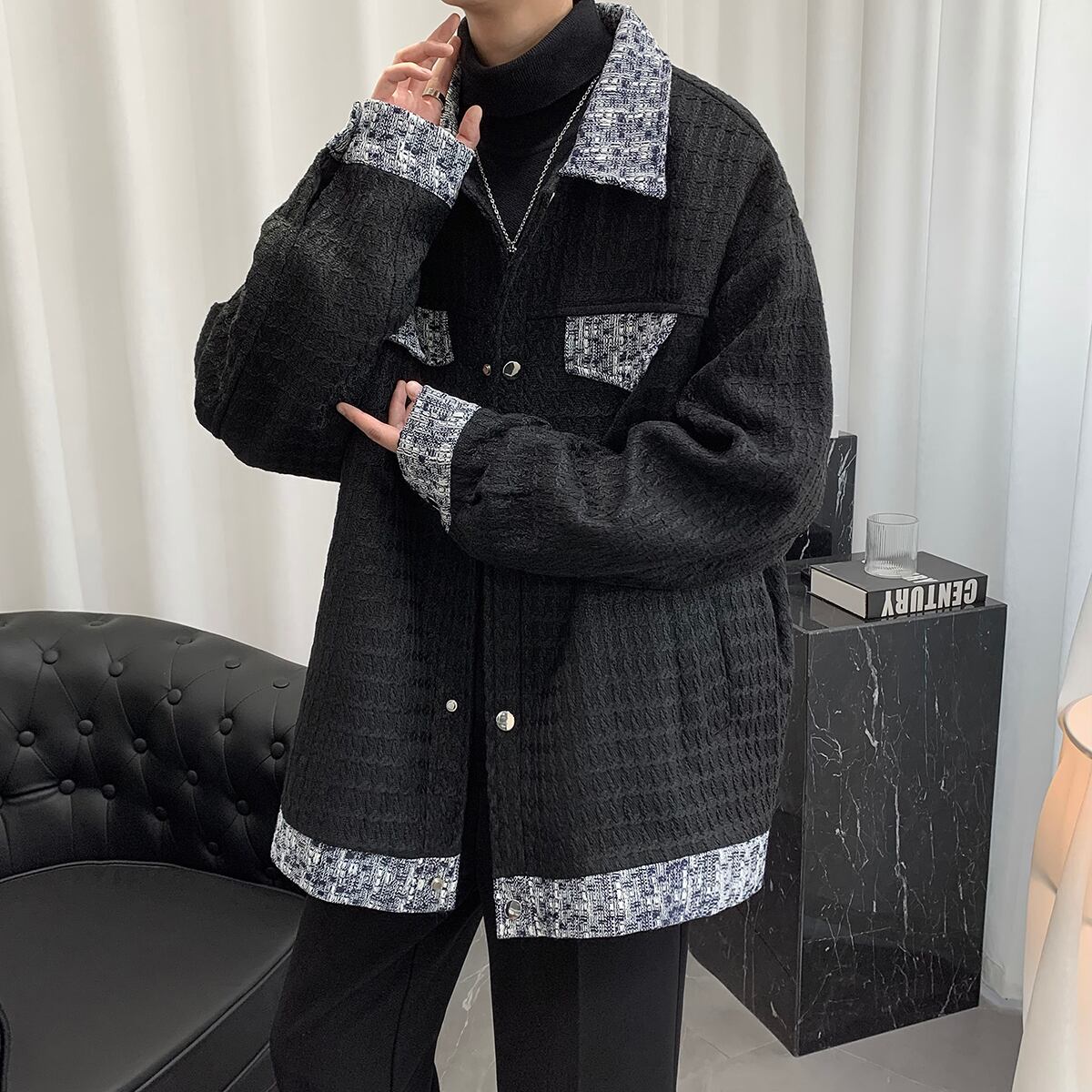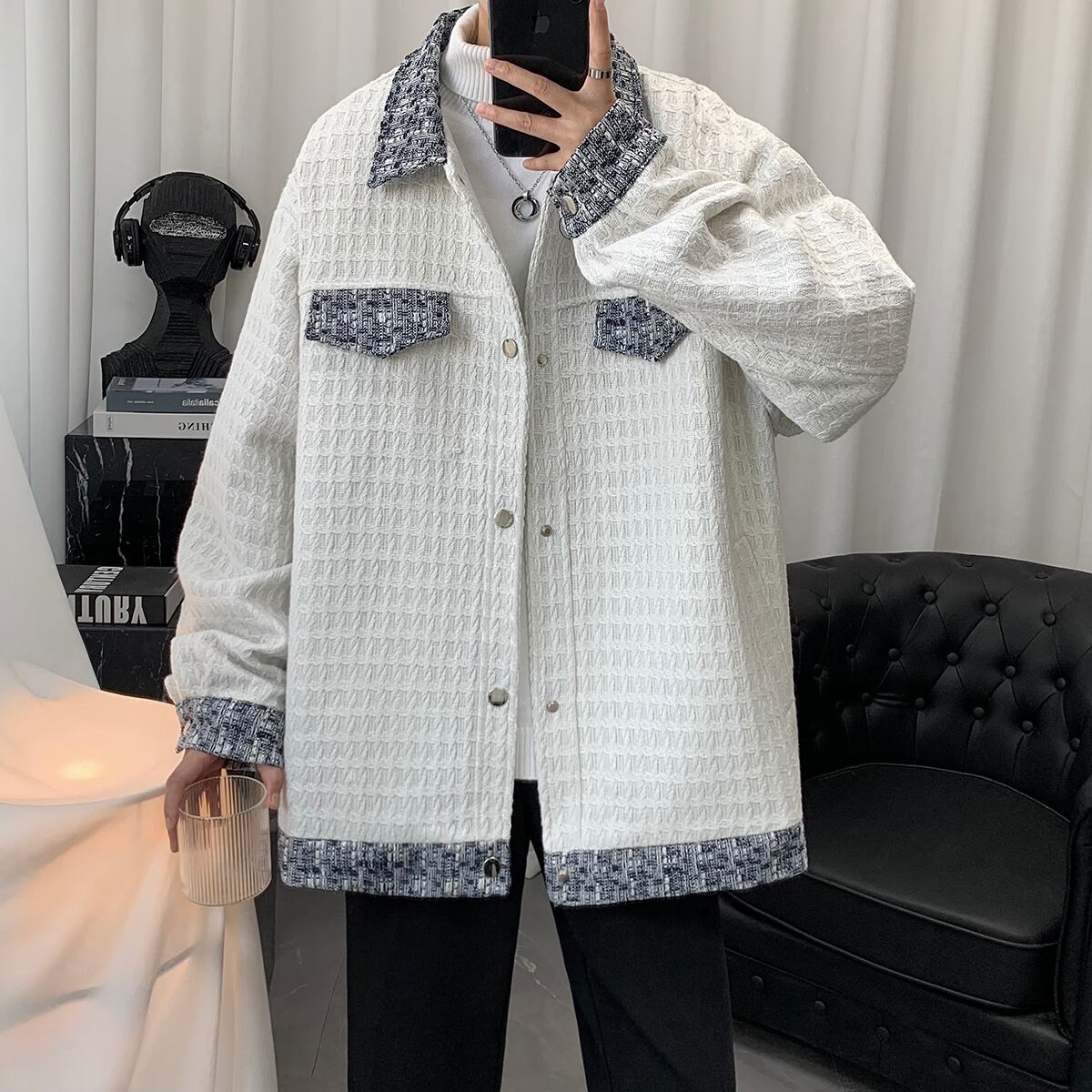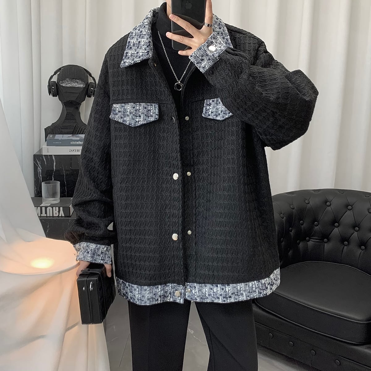 【HEIANXIシリーズ】★アウター★ ジャケット 2color 男女兼用 メンズ 切り替え ブラック ホワイト カジュアル