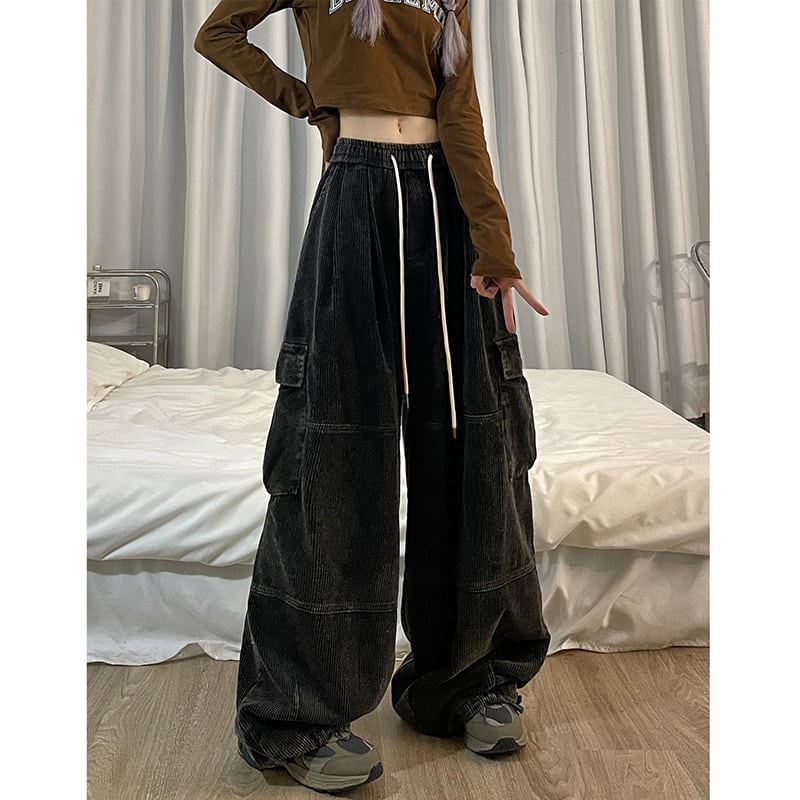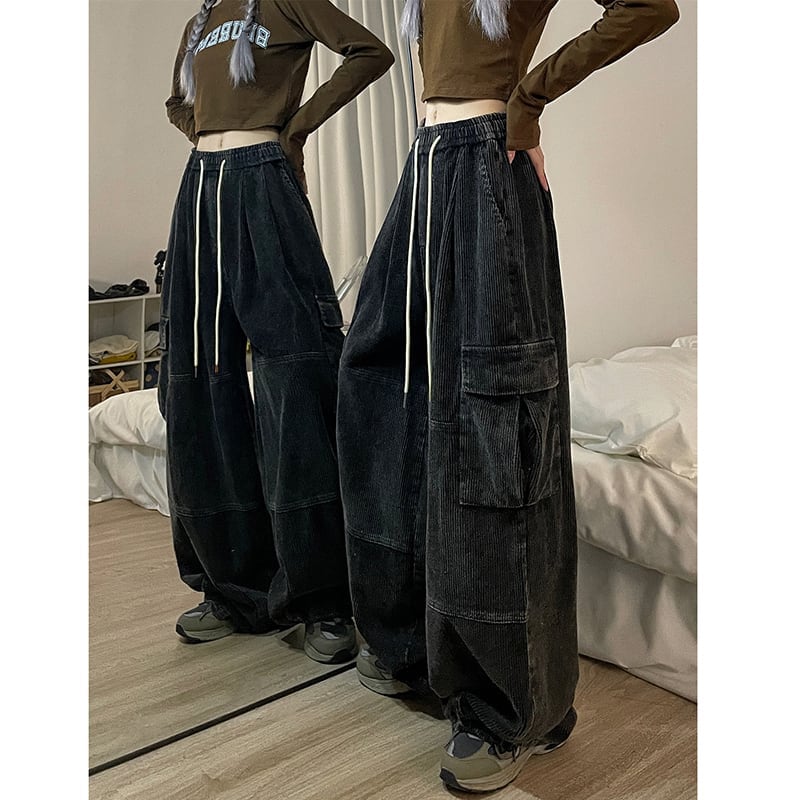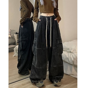【KUZHUAIシリーズ】★ズボン★ 2color ボトムス カジュアルパンツ 男女兼用 メンズ コーデュロイ ブラック パープル