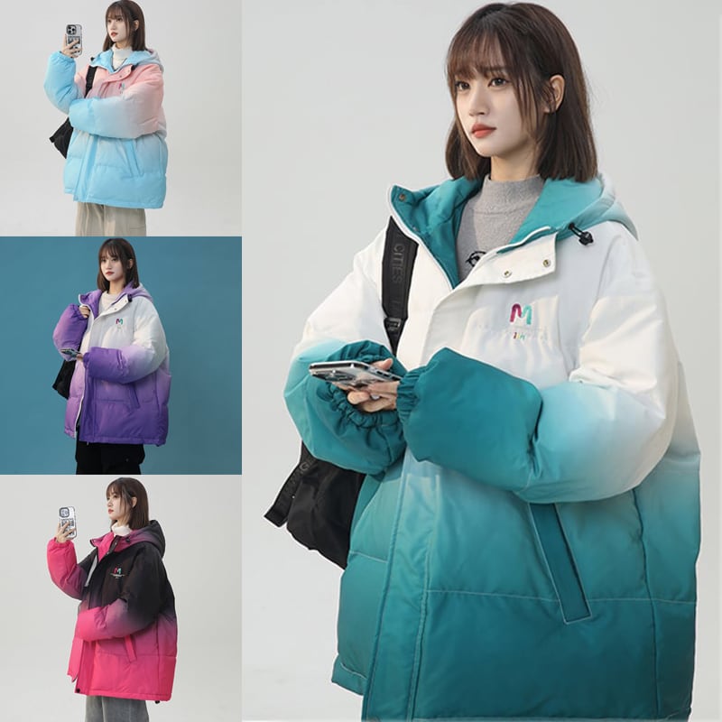 【藤伊曼シリーズ】★綿入れコート★ 4color アウター ジャケット 男女兼用 メンズ フード付き グラデーション 暖かい