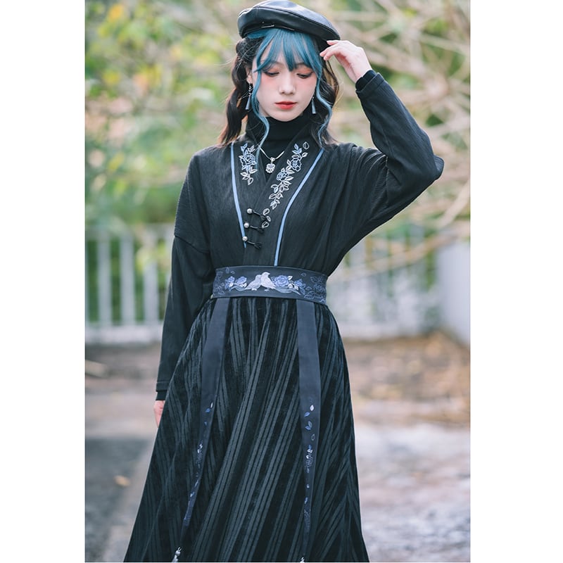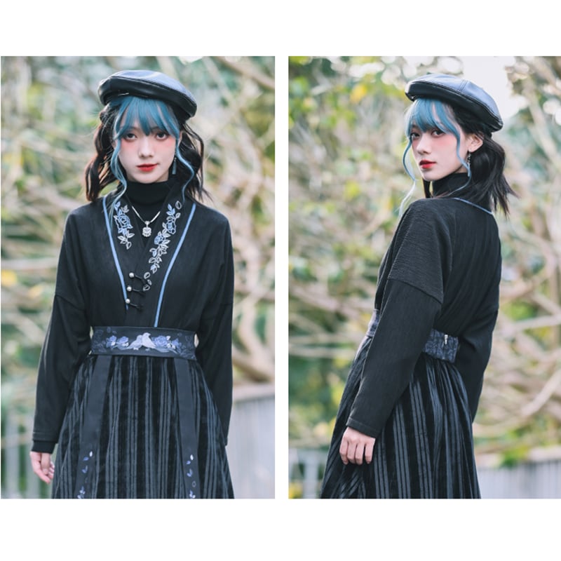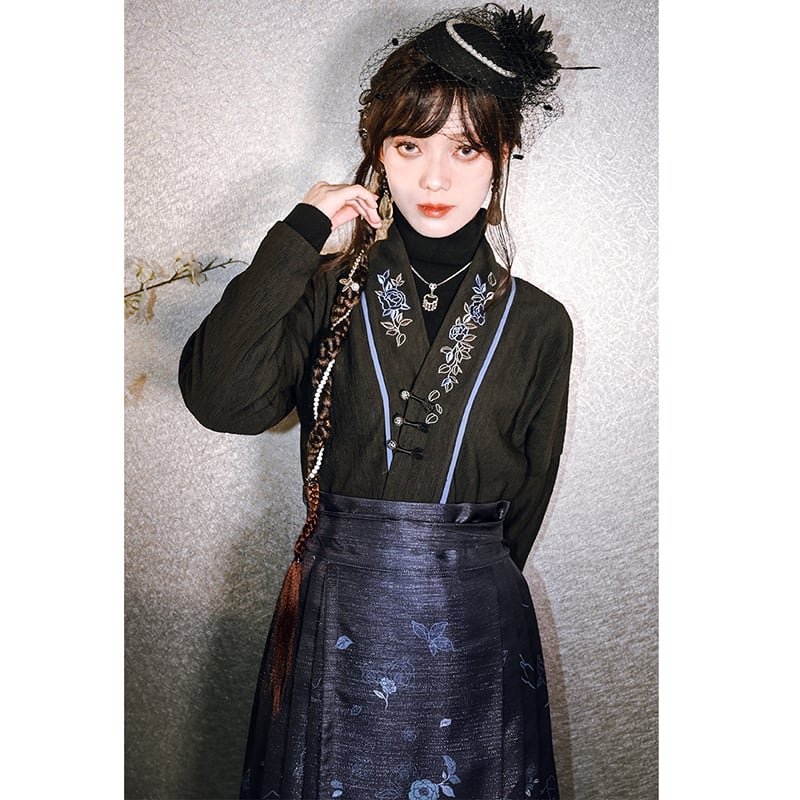 【古怪舍---鸞鳴赴夢シリーズ】★チャイナ風トップス★ 刺繍 花柄 シャツ Vネック レディース 漢服トップス