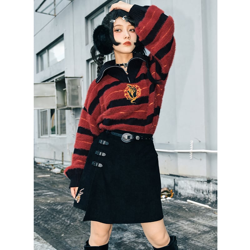 【古怪舍---無量シリーズ】★チャイナ風トップス★ 2color セーター 横縞 縞模様 レッド ブルー カジュアル