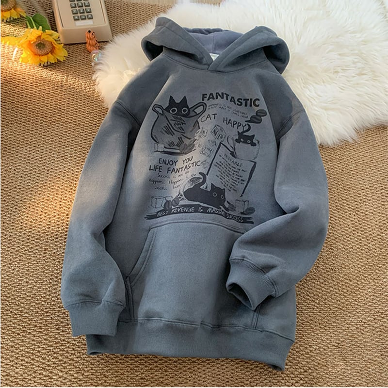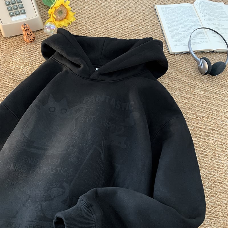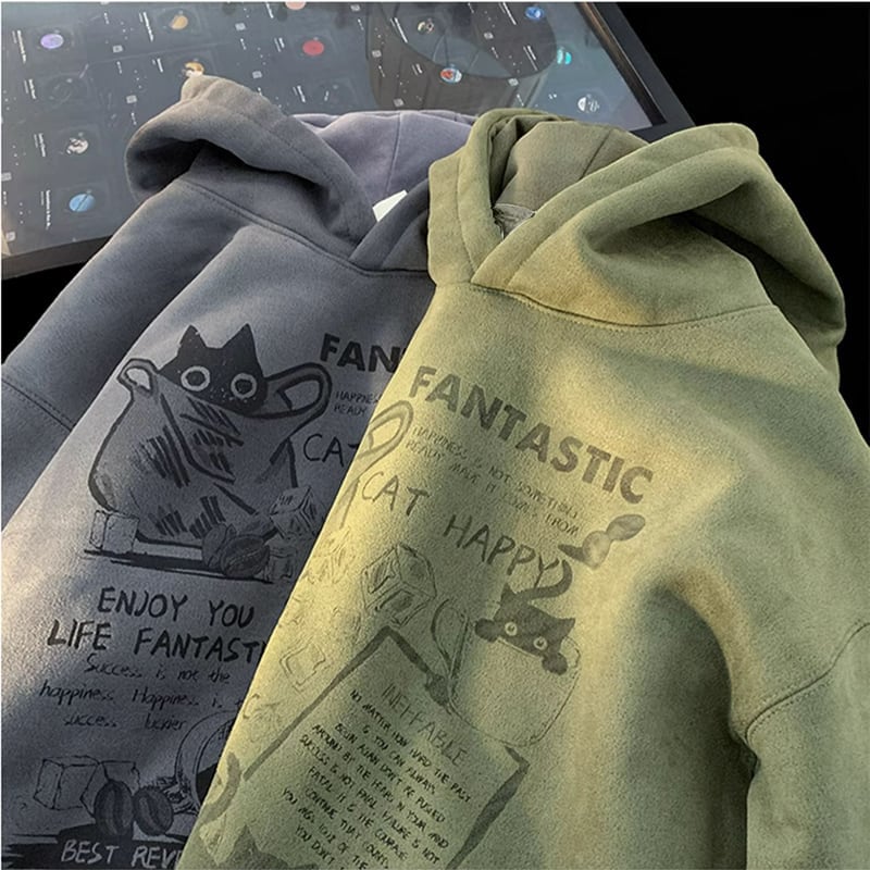 【KADISHOUシリーズ】★パーカー★ 6color トップス 男女兼用 メンズ 猫 猫柄 ネコ ねこ 大きいサイズ スエード
