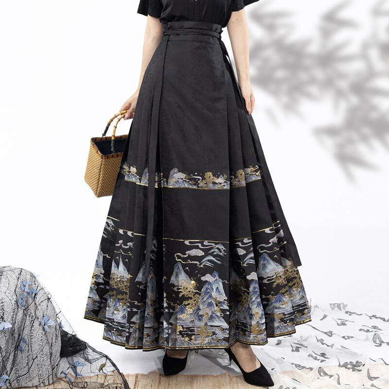【喚初---明月松間照シリーズ】★チャイナ風スカート★ まきスカート 中華服 ロング丈 オリジナル 可愛い 漢服スカート