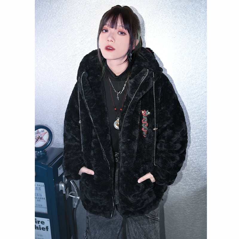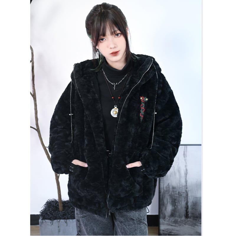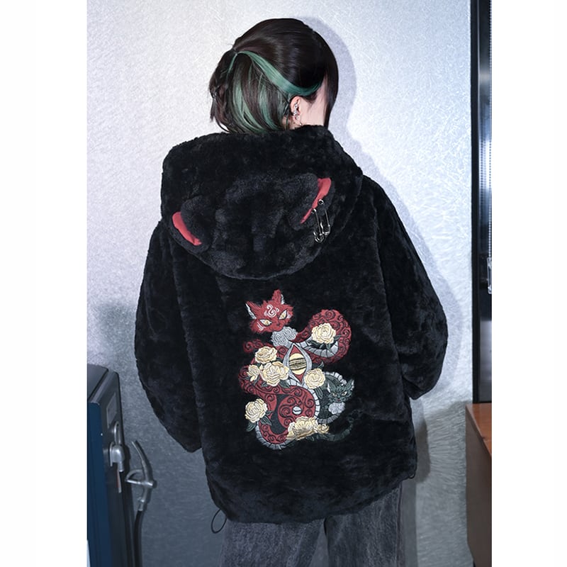 【古怪舍---赤鱗貍影シリーズ】★チャイナ風コート★ 冬用コート アウター coat 綿入れ ゆったり 厚い 暖かい 刺繍 ブラック 黒い