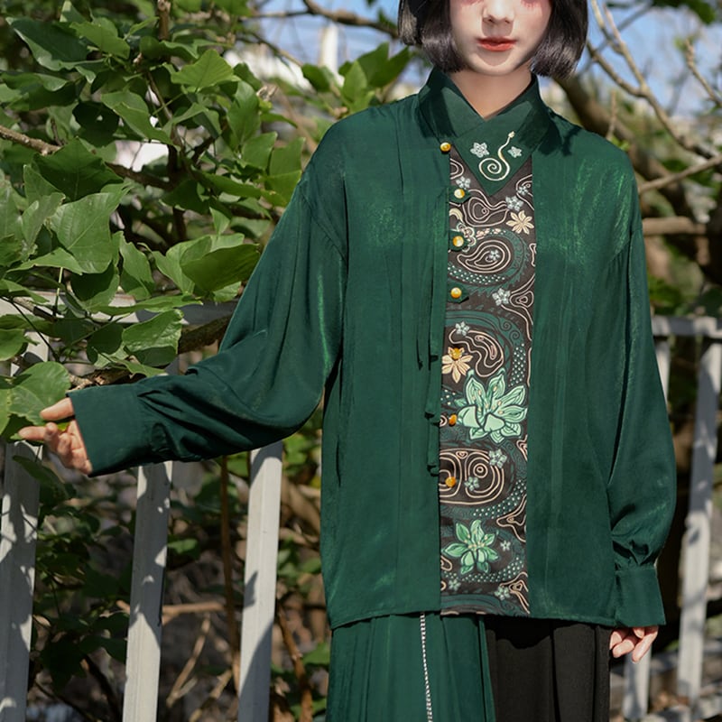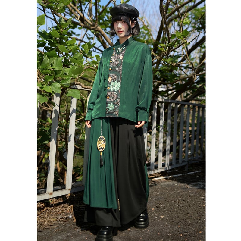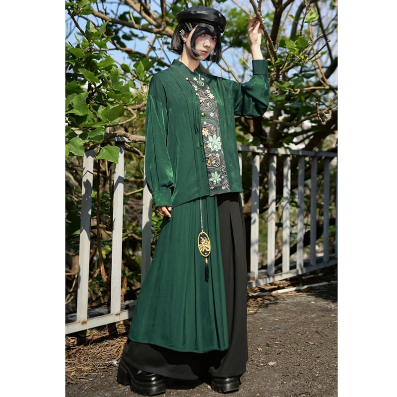 【古怪舍---升卿シリーズ】★チャイナ風トップス★ 春夏タイプor秋冬タイプ シャツ 中華服 長袖シャツ オリジナル 超可愛い グリーン 緑