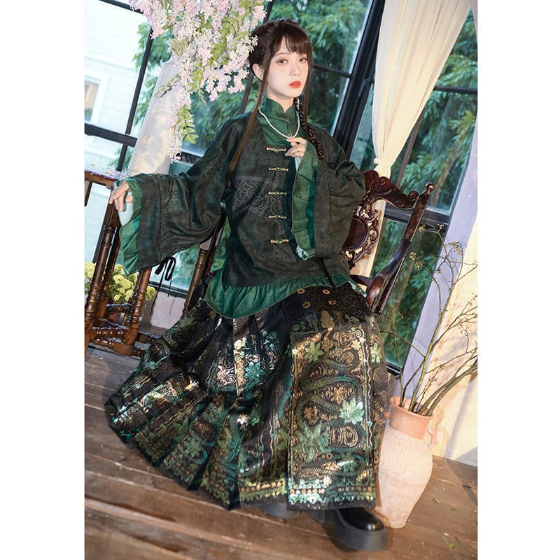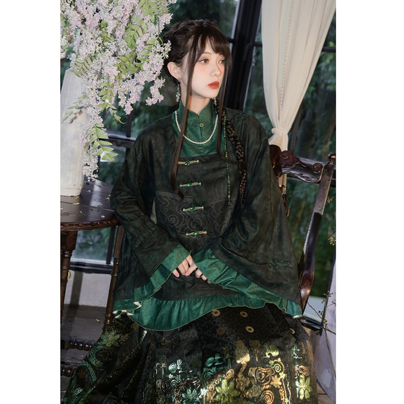 【古怪舍---升卿シリーズ】★チャイナ風トップス★ フェイクレイヤード 中華服 長袖 漢服トップス オリジナル
