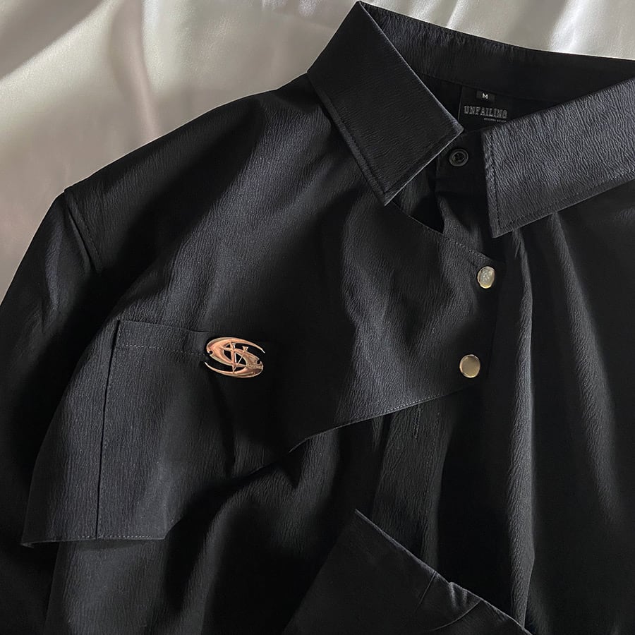 【STRAPPINGシリーズ】★シャツ★ トップス 長袖シャツ 男女兼用 メンズ 個性的ブラック ホワイト